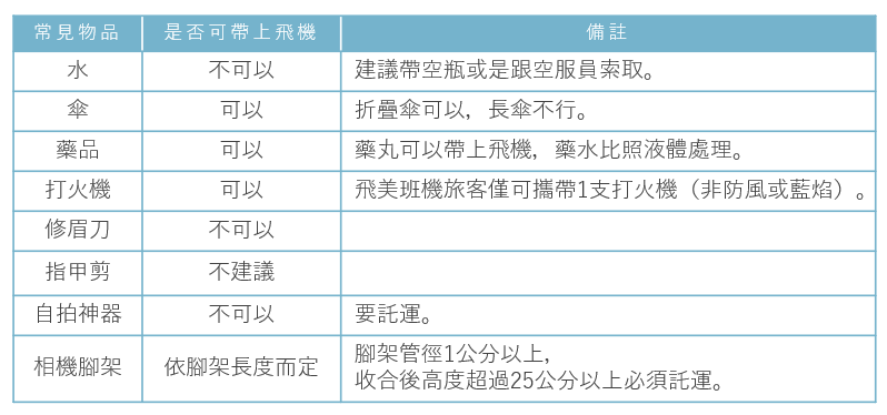 ・美國運輸安全署(TSA)規定,飛美班機旅客僅可攜帶1只打火機(非防風或藍焔)。