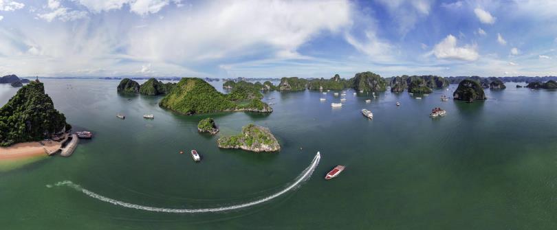 乘著2025年9月首航,夢幻的海豚號遊輪,結合自然美景與現代奢華的下龍灣日間航程。總噸位達1500噸的精品級遊輪,全長約100公尺、寬20公尺,可容納超過600位貴賓,是下龍灣首艘以「娛樂與感官體驗」為核心設計的豪華遊輪。