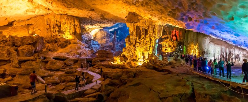 此佔地約有一萬平方公尺的大型石灰岩洞,而洞內形形色色的鐘乳石、石筍、鐘乳石柱,數量驚人,展現了大自然堅定的力量,也是下龍灣最漂亮的石灰岩洞之一。是下龍灣眾多天然形成的地形奇觀中,最完善、也最受觀光客歡迎之處。