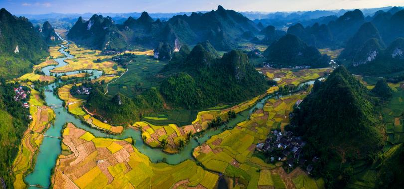 位在河內南方約100多公里處,在北越稱為「Hua Lu Tam Coc」。此處河流平穩、河床不深,可放心遊船瀏覽山湖之景。素有陸上下龍灣之稱的陸龍灣與下龍灣同樣為石灰岩地形,群山環繞、生態田園風光、寧靜鄉村景色。