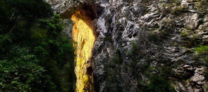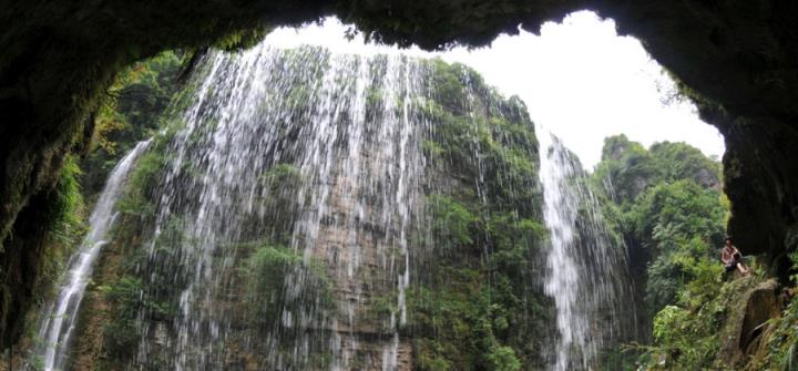 以世界上最壯觀最美麗的城市大峽谷之名享譽世界。集中展現了雲貴高原巖溶地貌的典型特徵。古代的造山運動造就了一條地球大裂縫。地縫全長74.8公裏,最深處有300米,谷底落差為1000米巖溶坍塌暗河變谷底,周圍河流向這裏傾注,形成多條瀑布,故有「天溝地縫百瀑谷」,「七十二瀑聚一峽」之比喻。