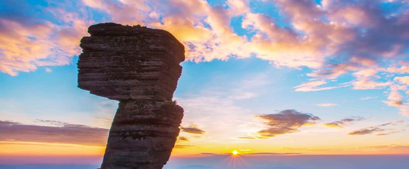 是梵淨山最具代表的山石景觀,因形如蘑菇而得名,是一方砂質板岩和石英砂岩石柱,上面大下面小,高度大約10米,上面是正方形,下面是長方形,看起來不穩,但是已經屹立了許多年。