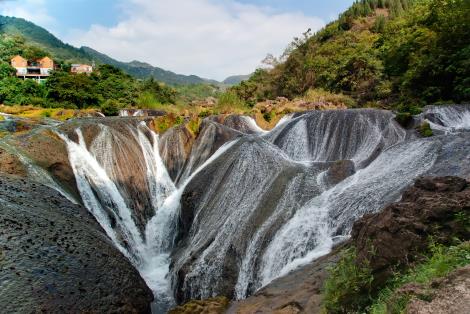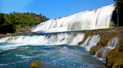 傳說中的「龍犀相摶」的地方。瀑布位於天星橋景區水上石林區的,其形如鬥,其聲如歌,其狀如鏈。在黃果樹瀑布群中,它既不是以高取勝,也不是以闊或大驚人,而是以它那千絲萬縷的情態和如泣如訴的瀑聲,讓人看見就不想離開。