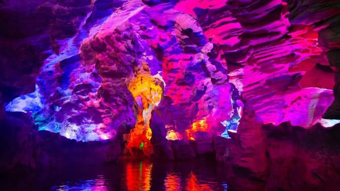 其原名翁龍潭,為喀斯特暗河,是臥龍河的源頭,兩岸是蔥茸秀麗的喀斯特原始植被,潭外水聲轟鳴,霧雨濛濛,四周高山緊鎖,水潭猶如地底深淵,有龍潭虎穴的意境。
