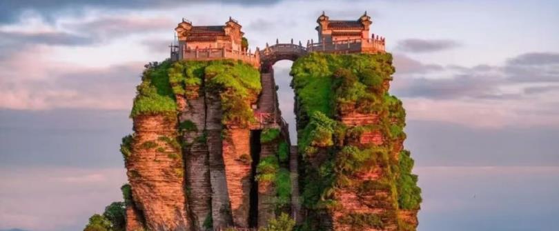 又稱新金頂,是梵淨第一奇景,峰體雄渾高昂一柱擎天,恰似像雲海中高高聳起的一隻巨大的驚嘆號,奇險無比。攀登金頂,需由右側沿從絕壁上鑿出的狹窄石蹬,借助鐵鍊,手腳並用才能攀緣而上。