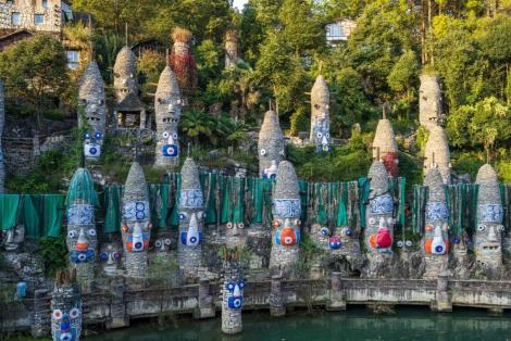 1994年,谷主宋培倫受美國創作者、著名雕刻家克紮克愚公移山般的精神所激勵,回國後打造夜郎國。夜郎谷占地200多畝,為了降低建造成本,大多就地取材。夜郎谷中有許多以臉譜、面具等為主題的石古堡、石柱等。