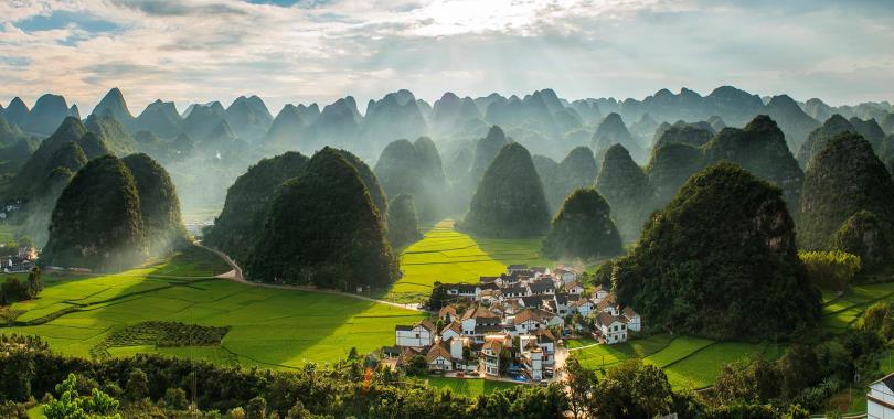 貴州省位於中國西南部,海拔在一千公尺以上,自然風光奇特秀麗,典型的喀斯特岩溶地貌,其山石、水景、洞穴等風光千姿百態;有苗、布依、侗等17個世居少數民族,民族風情濃鬱古樸;省會城市貴陽氣候四季如春,溫暖濕潤。