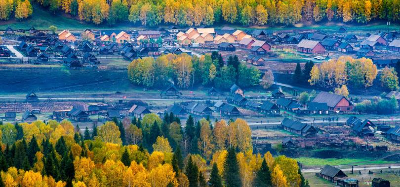 禾木村是是圖瓦人的集中生活居住地,是僅存的圖瓦人村落中最遠和最大的村莊;禾木村的房子全是原木搭成的,充滿了原始的味道,最出名的是萬山紅遍的醉人秋色,炊煙在秋色中冉冉升起,勝似仙境,以被譽為「中國最美村落」。